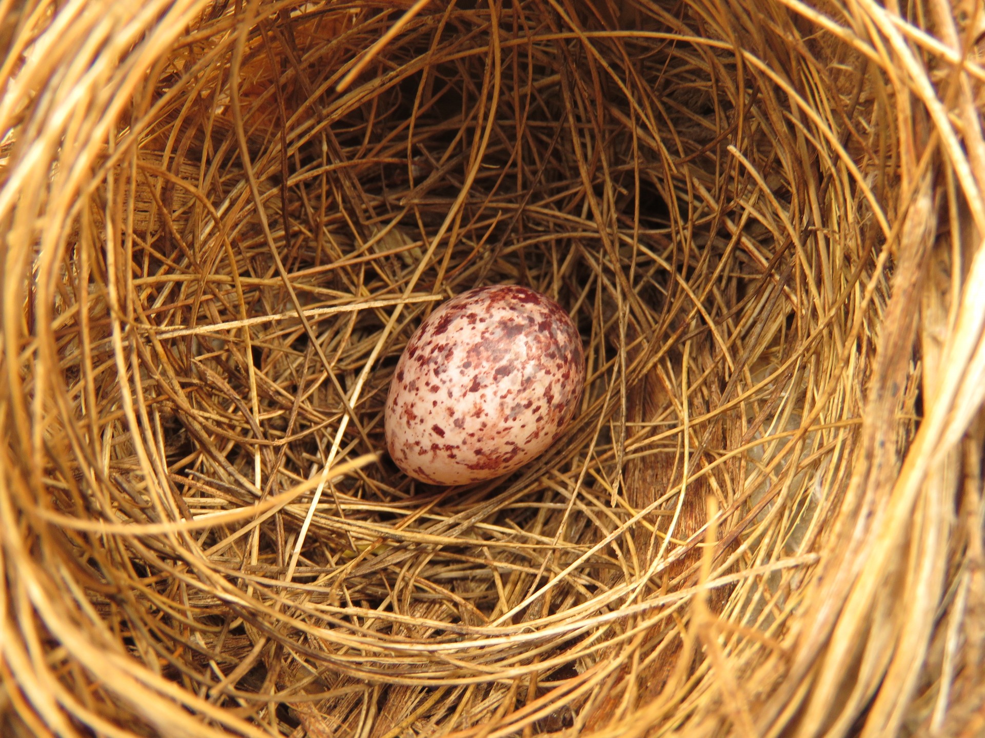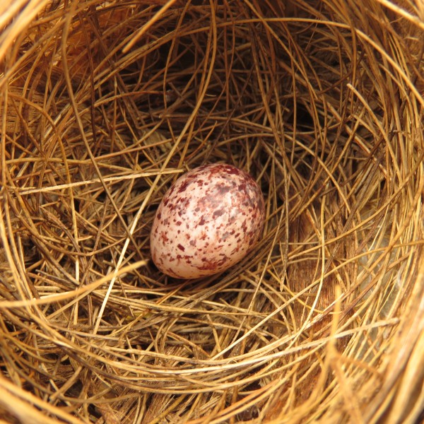 Red-vented bulbul egg in the nest. Normally they build their nest at a height of 2-3 m in bushes.