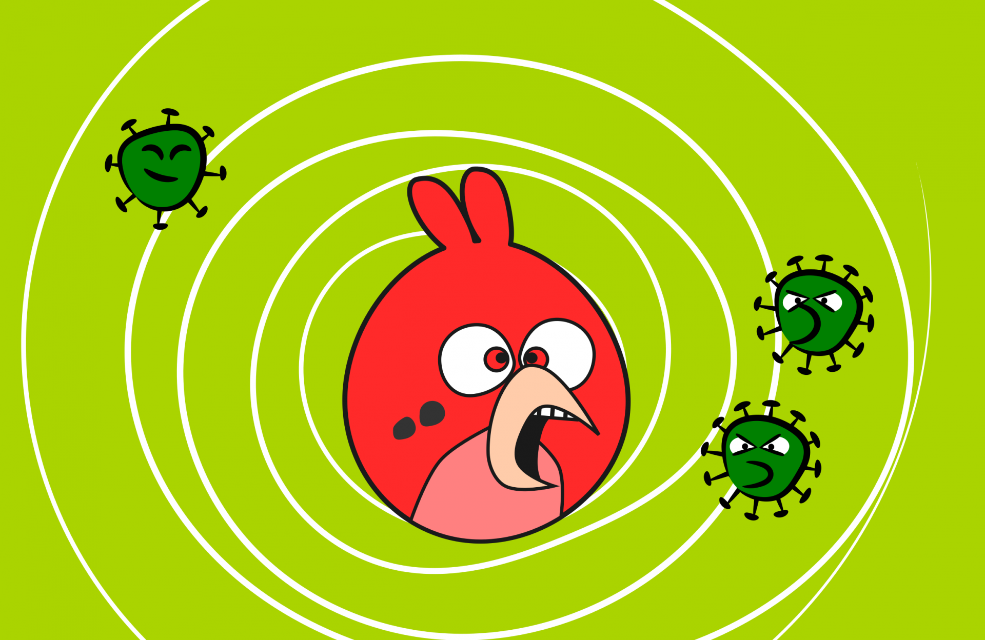 Coronavirus attacking on a red bird.