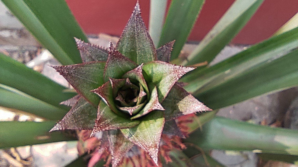 Pineapple fruit from the top view.