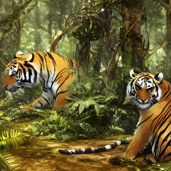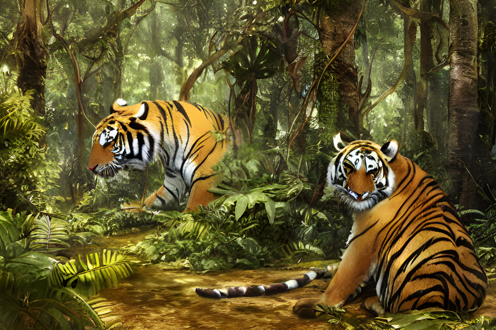 Two tigers in the jungle painting. Tiger wallpaper, tiger painting, bengal tiger.
