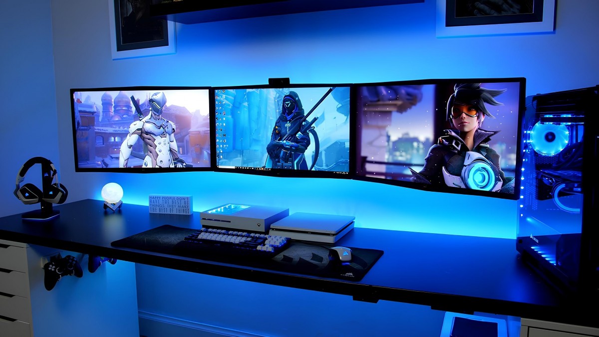 Gaming PC setup three screen