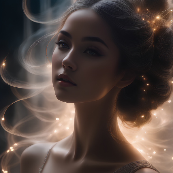 Portrait image of a gorgeous lady smoke background.