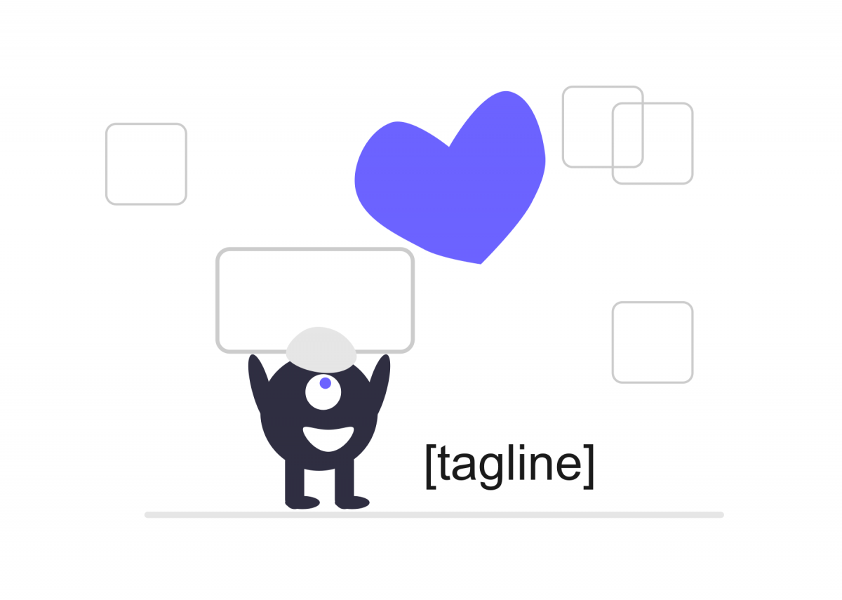The illustration of a cute tiny character shows a sweet and short tagline of the brand.