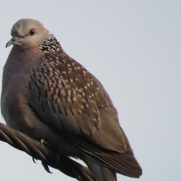 Pigeon sitting on wire rope.