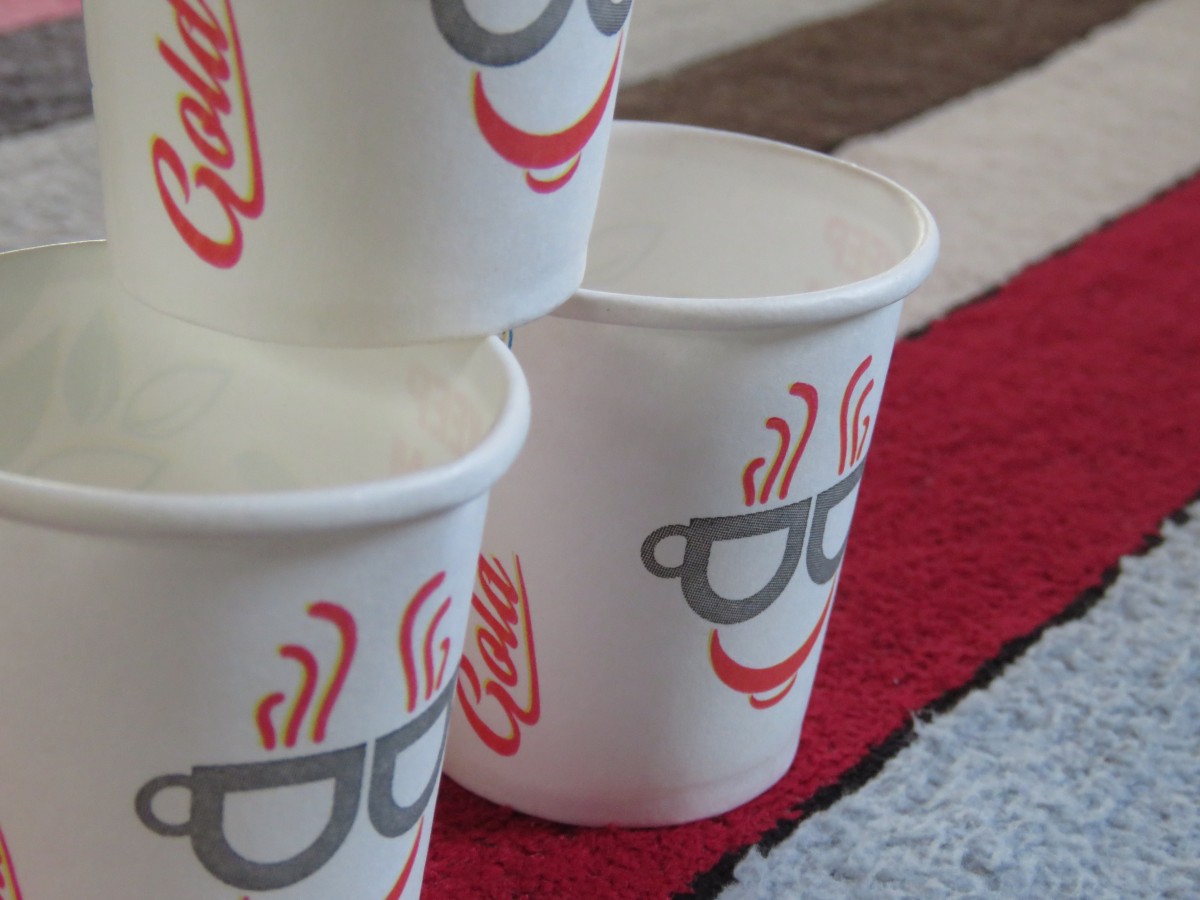 Paper cup tower side view.
