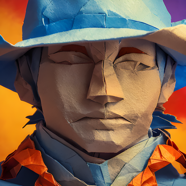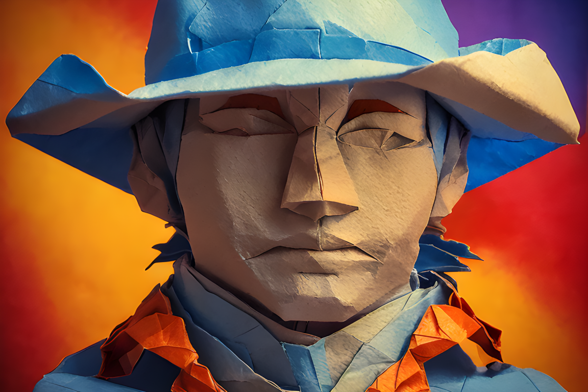 A cowboy origami close shot.