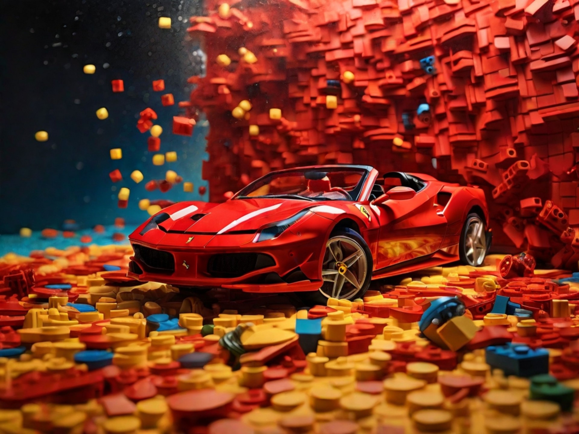 Red car surrounded by lego