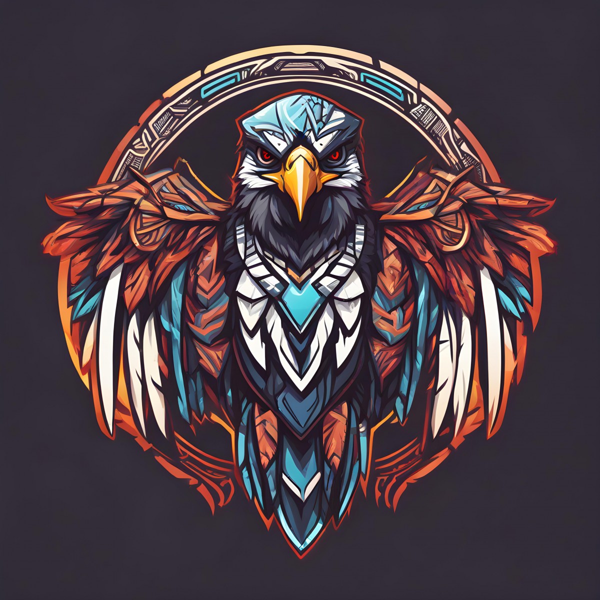 Tribal falcon vector logo in dark background.