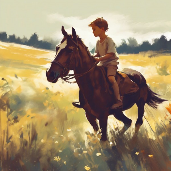 Countryside Journey – A Boy Riding Horse Through Open Fields