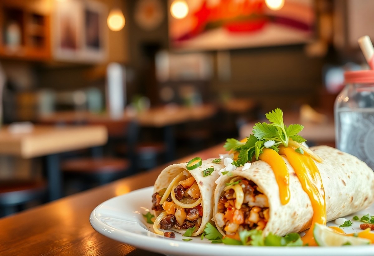 Tasty burrito filled with fresh ingredients, perfect for Mexican food lovers.